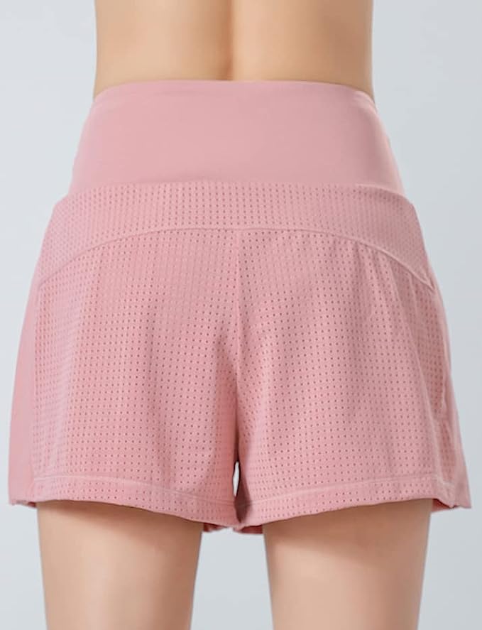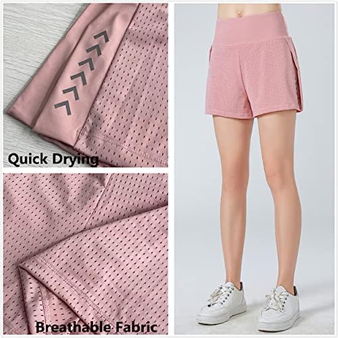 Pinellia Women-Running-Shorts 2-in-1 High-Waisted Workout-Shorts - Gym Athletic Slit Shorts with Pocket