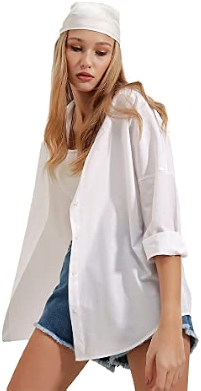 70% Cotton, 30% Polyester Imported Button closure Machine Wash We recommend you to buy your normal size. You will love these long sleeve stylish button down shirts. Loose fit design, oversized look, easy to roll up sleeves. Plus sizes are available solid color tops and blouses, here is the colors of the button down shirts we offer: black, white, purple, pink, brown (chocolate), beige-cream, army green, dark green, orange, dark lilac, indigo blue You can match these blouses and tops for women with any color and outfit you want. The shirts have an elegant look. They can be used as boyfriend button up shirts.