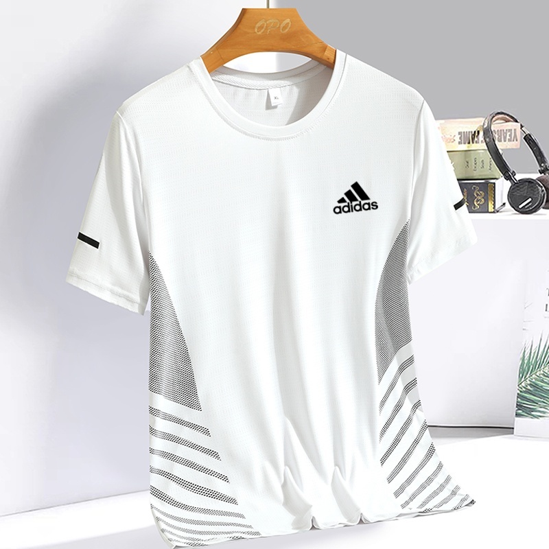 [Original] 5 Colors Quick-Drying Men's Short-Sleeved T-Shirt Ice Silk T-Shirt Perspiration Breathable Elastic Casual Top Large Size Sports Top